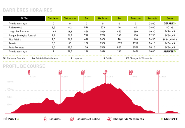Selon les conditions climatiques prévues pendant l’épreuve et les différentes exigences du terrain, il est également recommandé d’emporter le matériel suivant: Casquette/Bonnet/Bandeau ou équivalent, Vêtements couvrant les membres, Vêtements chauds en cas de prévision de froid, Bandage (min. 80x3 cm), Bâtons, Lunettes de soleil, Vaseline et crème solaire